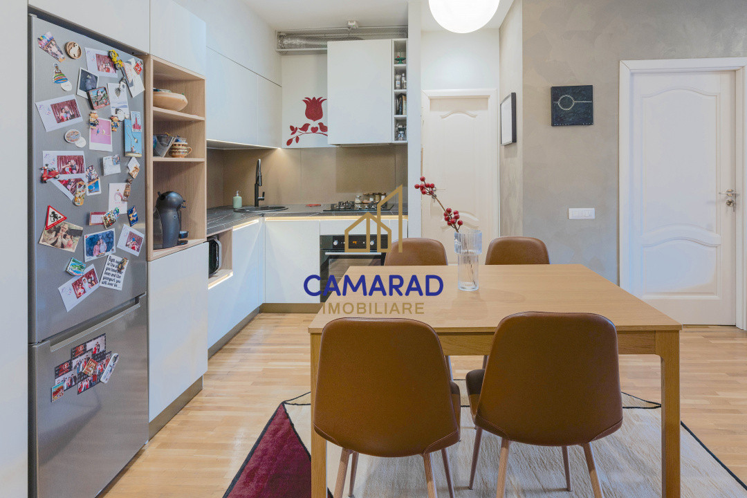 Complet utilat si mobilat cu ajutorul unui designer, se remarca printr-un aspect modern si calitate superioară a finisajelor si a mobilierului. Compartimentarea este semidecomandata, cu 2 camere, apartamentul având o suprafață de 49,64 mp. Bucătăria este open space, integrată armonios în zona de zi, iar ferestrele mari oferă lumină naturală pe tot parcursul zilei. Blocul este construit in 2007, având acoperiș din tabla tip Lindab, cu izolație buna ce elimina problemele tipice blocurilor vechi.