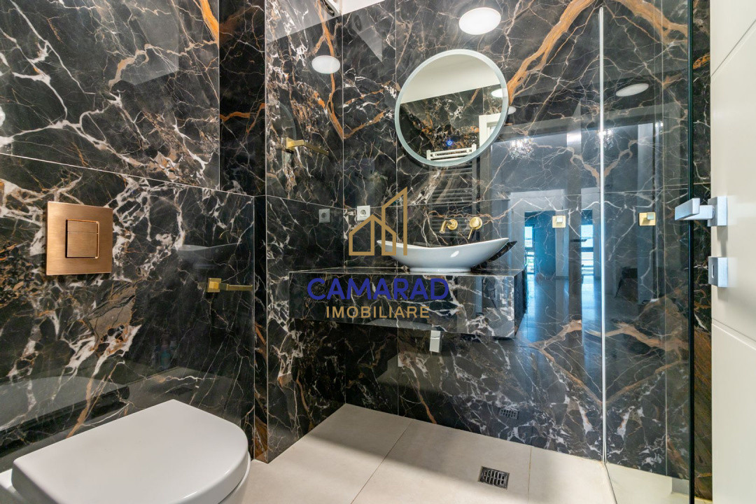 Așa cum nu s-a făcut niciun compromis în ceea ce privește suprafețelor generoase ale apartamentului, la fel s-a întâmplat și cu finisajele: gresie, faianță, parchet, obiecte sanitare Grohe și Kludi, uși și detalii interioare – toate de calitate superioară. Apartamentul se vinde mobilat și utilat, cu mobilier pe comandă, adaptat spațiului, și electrocasnice de calitate superioară. Dispune de 2 aparate de aer condiționat, finisaje premium și o atmosferă modernă, ideală pentru o familie sau un cuplu care dorește spațiu și confort.