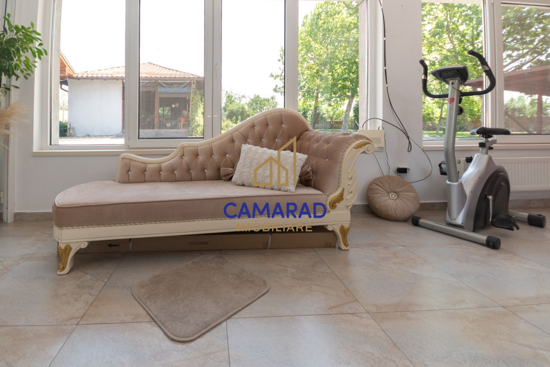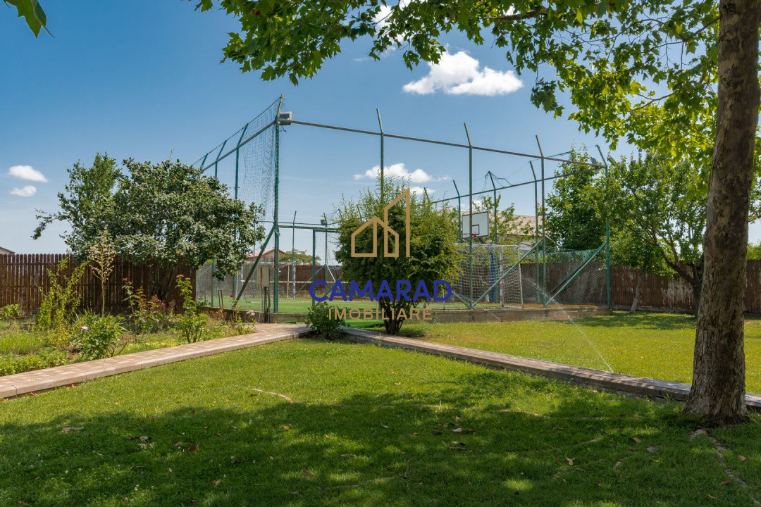 Situata in proximitatea lacului Darvari, casa se afla pe un teren de 2551 mp avand o suprafata utila de aproximativ 241 mp si este compusa din 4 camere, o bucatarie, dressing, 3 bai, 2 magazii, un foisor si un umbrar unde se pot parca 5 masini. Patru camere sunt insiruite fiind deservite de 2 bai. Langa bucatarie este un living si o baie. Cele doua magazii pot fi folosite pentru depozitare scule si unelte sau camara.