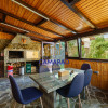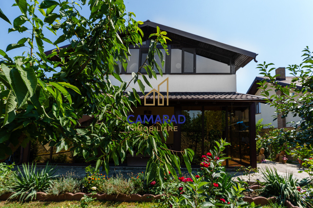 Exteriorul este un alt punct forte al proprietății.Curtea este frumos amenajată și îngrijită, cu pomi fructiferi, flori, alei din piatră naturală și mai multe zone de relaxare. Un spațiu extrem de atractiv este foișorul generos, echipat cu grătar, cuptor, chiuvetă și tot ce este necesar pentru a vă bucura de momente de relaxare alături de cei dragi. În plus, mai există și alte zone de relaxare frumos amenajate, un spațiu de depozitare și un grup sanitar exterior.