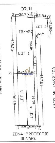 Terenul este dezmembrat in 4 loturi plus inca un lot destinat drumului de acces pentru fiecare lot in parte. Avand in vedere acest lucru puteti utiliza doar o parte din loturi si pe restul le puteti vinde ulterior daca o sa fie cazul.